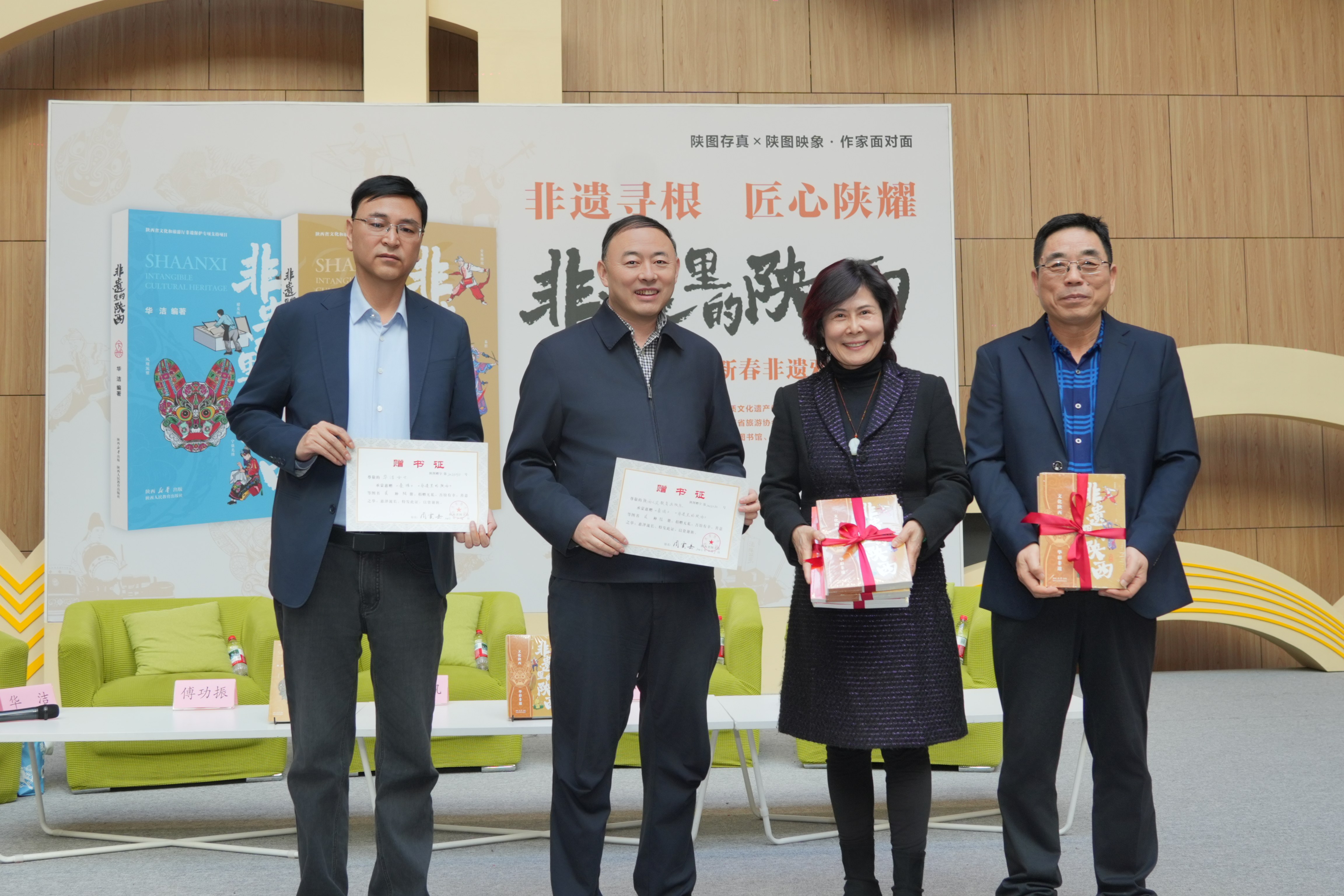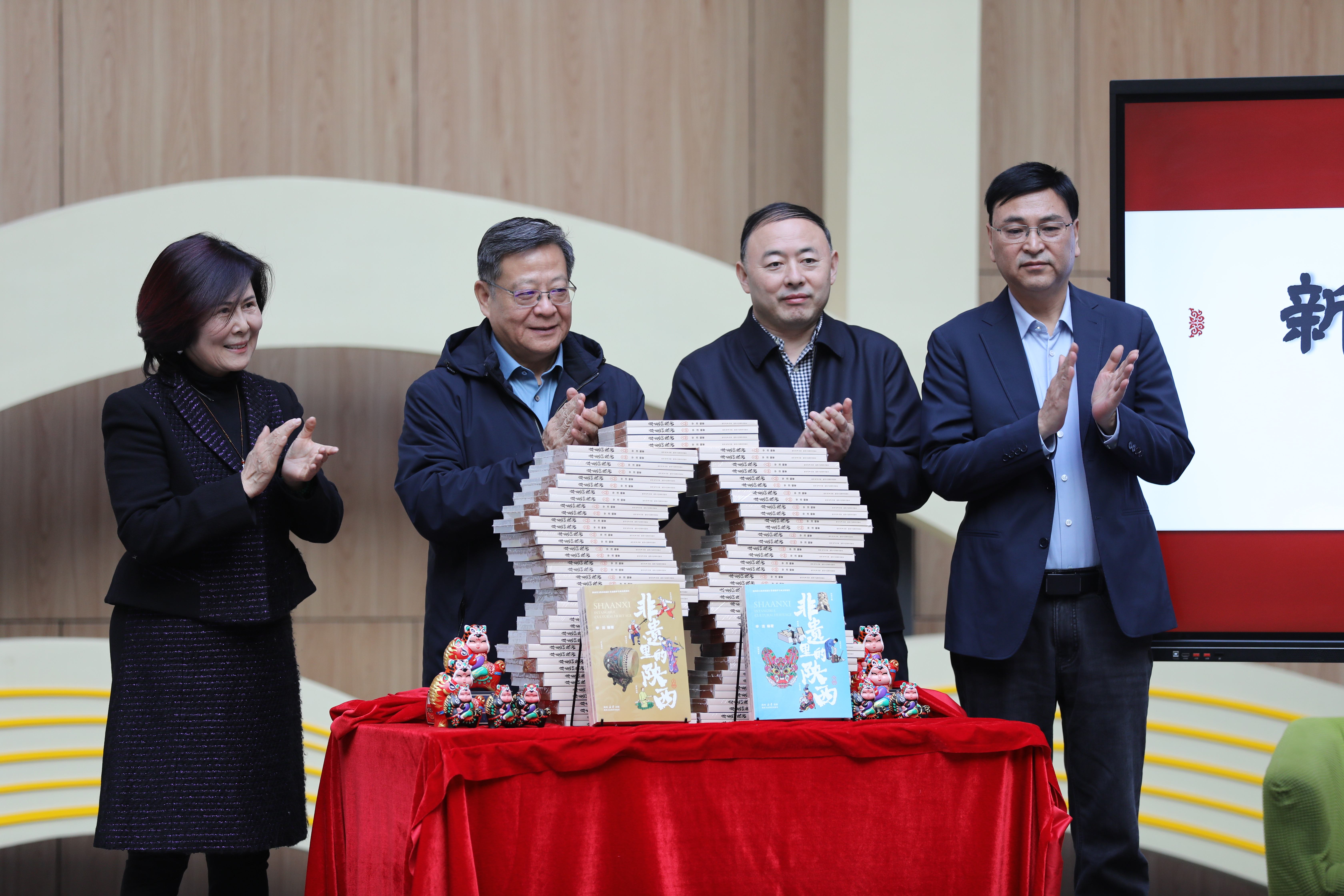 嘉宾手持《非遗里的陕西》合影